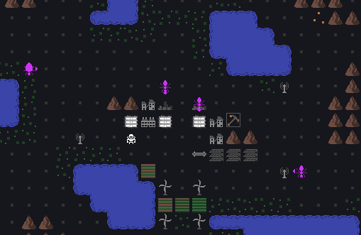 * Burrowers are very interesting. There's so little you can do to interact with them - it's like it's the game's way of making sure that no strategy is foolproof. And in a roguelike-adjacent game, that's a good thing to have - uncertainty, fear, the need for backup plans. If burrowers are going to pop up on adjacent turns then you basically ARE taking damage. But there's so many things you can do to plan around it - you can shoot them on the first turn to blow them up, or blow up a volatile (or battery??) next to them. You can entice them with earlier targets, put a shield generator up around your residences. The rest of the enemies once you're ahead of the power curve all feel about the same, since you just blast them at max range (twice if armored) and then their unique gimmick matters little. It makes me wonder what other kinds of enemies (or limitations on the player's power) could be interesting.